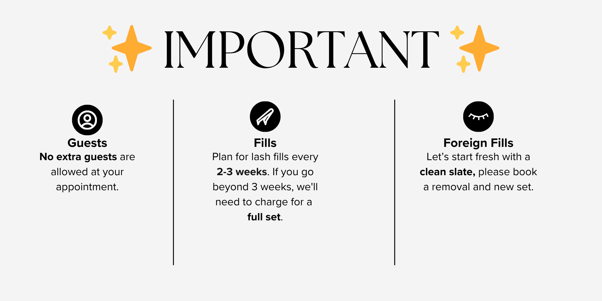 A 3-week fill is recommended for maintenance. In this process, we'll be taking out existing extensions, and replacing them with fresh extensions. In order to be considered for a fill, you need to have 30% or more lashes still attached to lashes.